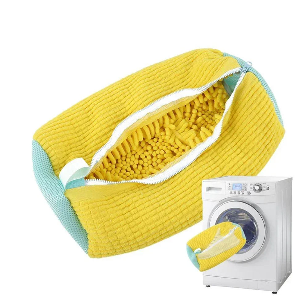 Simply place your shoes inside the laundry bag, zip it up, and let the washing machine do the work in minutes. Add laundry detergent (liquid or pod) and select 'low heat' or 'delicate' setting for the wash cycle. And ta'da - enjoy squeaky clean shoes!